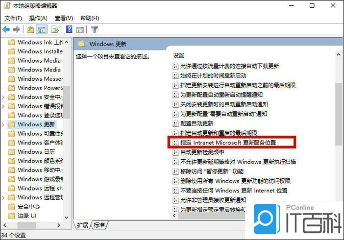 3. 之后在左侧的菜单页面中找到“指定Intranet microsoft 更新服务位置”,并且双击打开;