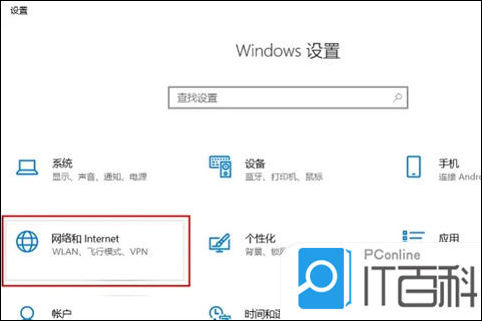 2、在出现的在出现的选项中点击网络和internet。
