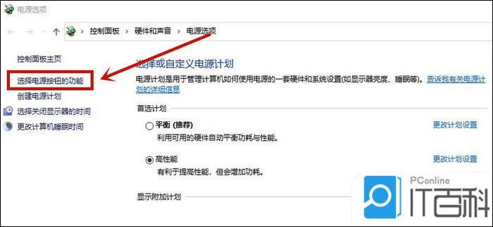 2. 在出现的“电源选项”界面,单击“选择电源按钮的功能”;