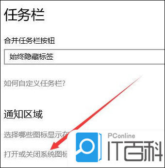 2. 找到【通知区域】下面的【打开或关闭系统图标】;