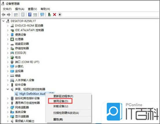 2. 设备管理器窗口中,展开声音,视频和游戏控制器,鼠标右键列表中的驱动程序,选择禁用设备。接着在弹出的提示框中,选择是,然后再重新启用设备;