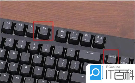 2. 在电脑键盘上找到F8键;