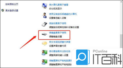 4、选择“使键盘更易与使用”选项,如下图所示: