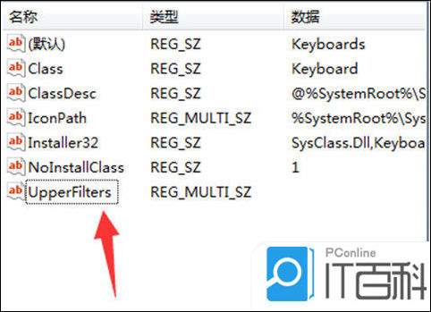 3、接下来就找到class选项,打开里面的4D36E96B选项,找到其右方的UpperFilters,将其删除就好了。