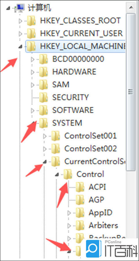 2、进入注册表之后按照以下图片的顺序依次打开。