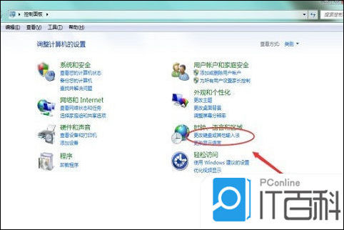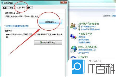 2、打开控制面板之后,点开里面的“更改键盘或其他输入法”,如下图: