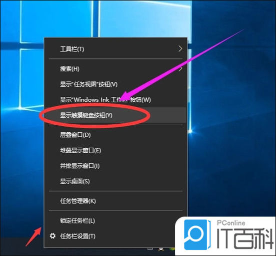 2. 在弹出的菜单上面,点击“显示触摸键盘按钮”选项;