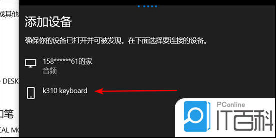 8. 在搜索到的蓝牙信号中点击键盘型号;