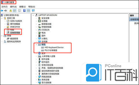 确认了键盘没问题,而键盘还是打不了字的情况下,我们就要考虑是否是键盘驱动的问题了。我们可以找到计算机管理中的“ 设备管理器 ”,然后找到“ 键盘 ”选项,点开查看键盘驱动,默认情况下是“ 标准101/102键或Microsoft自然PS/2键盘 ”,如果不是的话,可以试试重装一下。