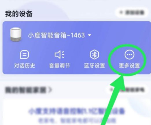 第二步:打开小度App后,依次点击右下角“我的”——“我的设备”——“更多设置”;