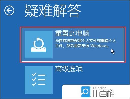 1、选择一个选项下, 点击【疑难解答(重置你的电脑或查看高级选项)】;