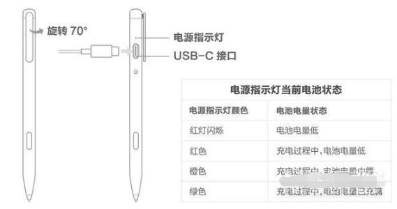 方法如下:逆时针旋转笔夹,出线USB接口后,使用平板自带充电器即可充电
