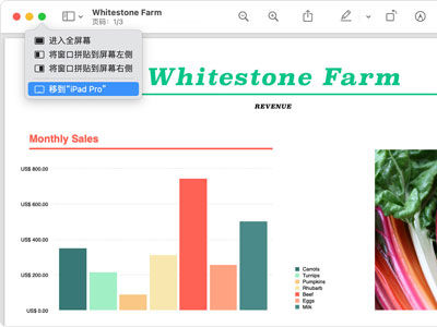 2、默认iPad显示Mac 桌面 ,可向其移入窗口,并像使用其他显示屏一样使用它。