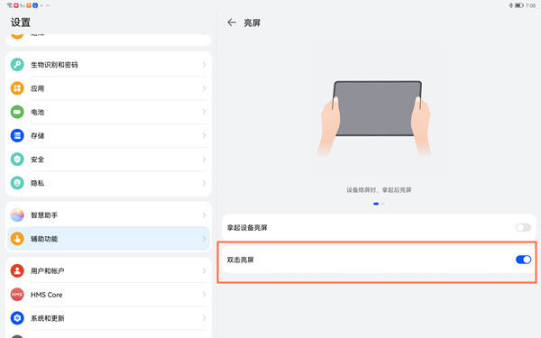 华为matepad11在使用之前是需要通过亮屏来解锁的,这里内置了电源键唤醒屏幕以及双击屏幕亮屏等方法。本期小编为大家整理了华为matepad11开启双击亮屏的方法,一起瞧瞧吧!