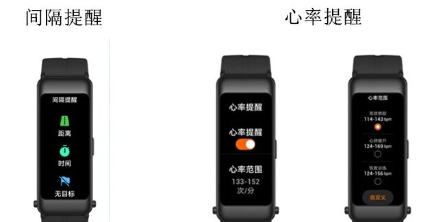 3、运动中的提醒(间隔提醒:到达设置的运动距离和时间目标,手环会进行提醒。心率提醒)