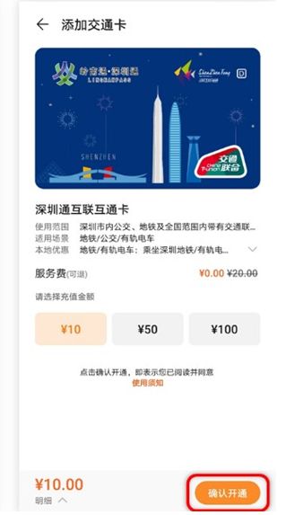 2、选择需要添加的 交通 卡,选择充值金额并付款即可。