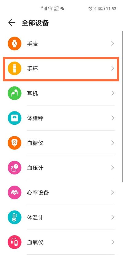 2、点击【手环】选项。