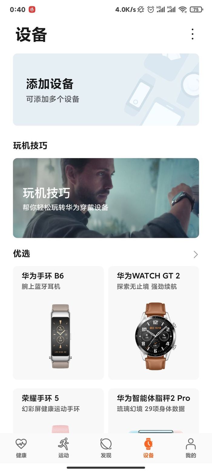 1、长按上键启动开机,手表就会开启蓝牙进入可以配对的状态,在小米手机上打开华为 运动 健康app。