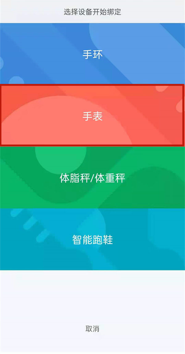 3、选择自己的手表类型后绑定即可。