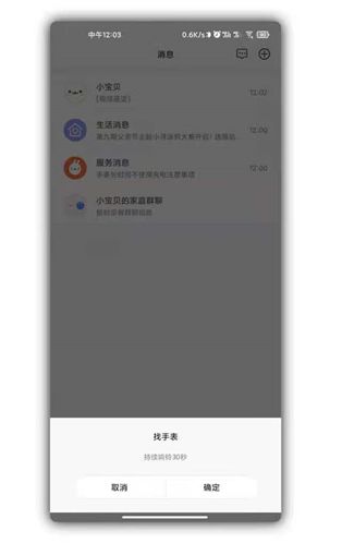 2、在手表管理页面点击找手表,手表会持续响铃30s。