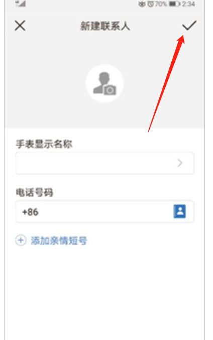 4、输入儿童手表显示名称及电话号码,设置 头像 ,点击右上角的对号保存即可。